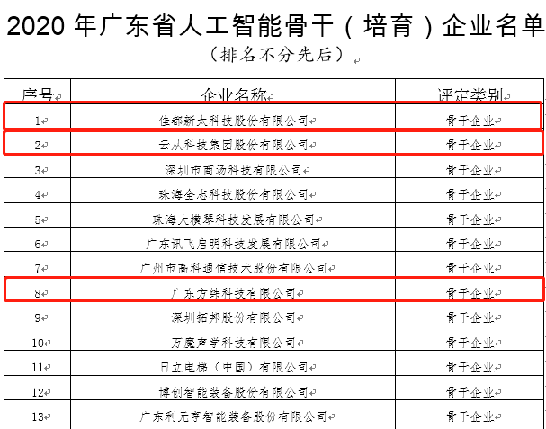 11月23日,廣東省工業和信息化廳發布了關于2020年廣東省大數據、人工智能骨干(培育)企業名單的公示。佳都科技憑借著突出的人工智能創新能力和產業帶動作用,入選2020年廣東省人工智能骨干企業名單,同時,佳都科技控股子公司方緯科技、參股公司云從科技入選該名單,佳都科技全資子公司新科佳都入選2020年廣東省大數據骨干企業名單。